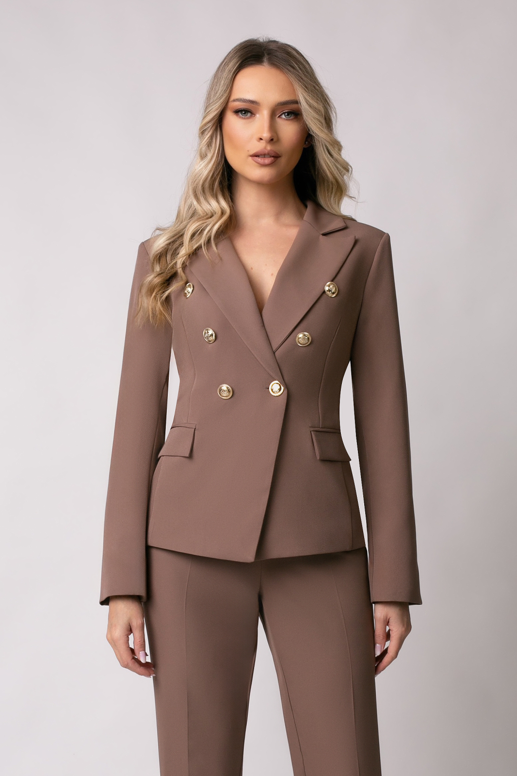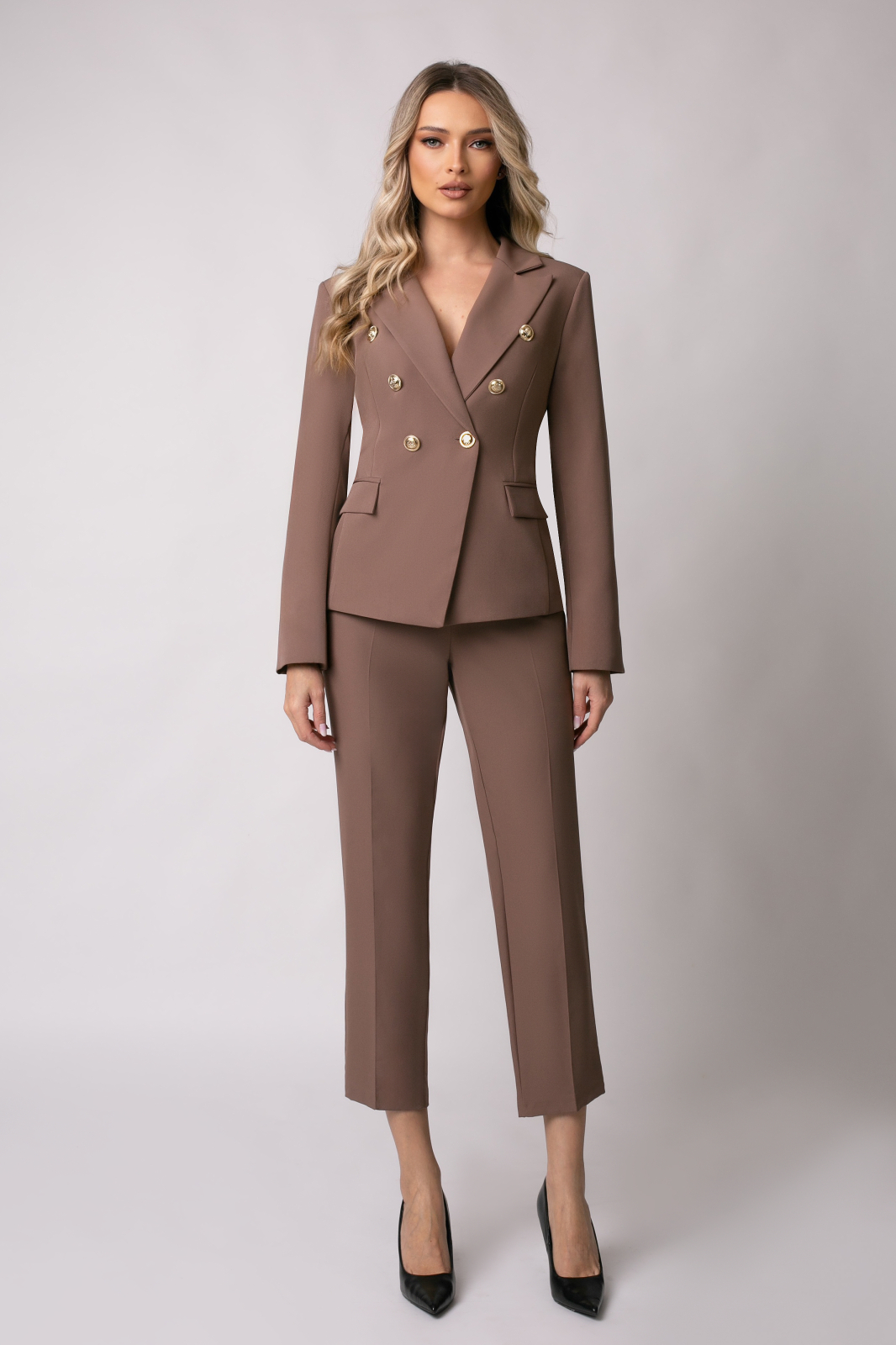 Amura Costum office mărime mare bej închis cu două rânduri de nasturi