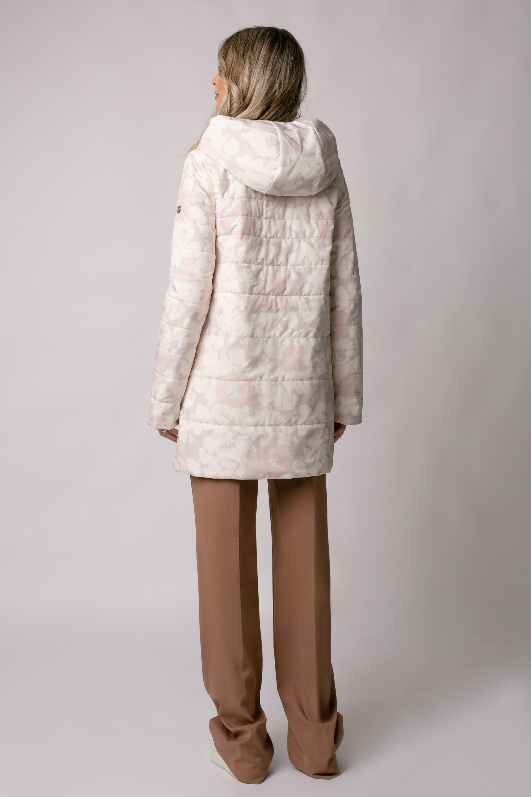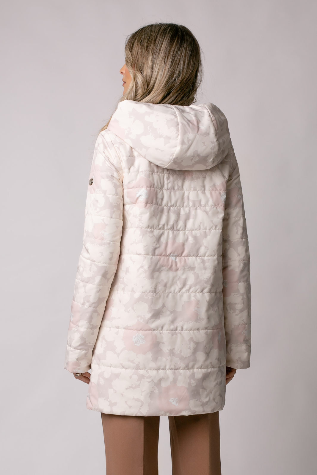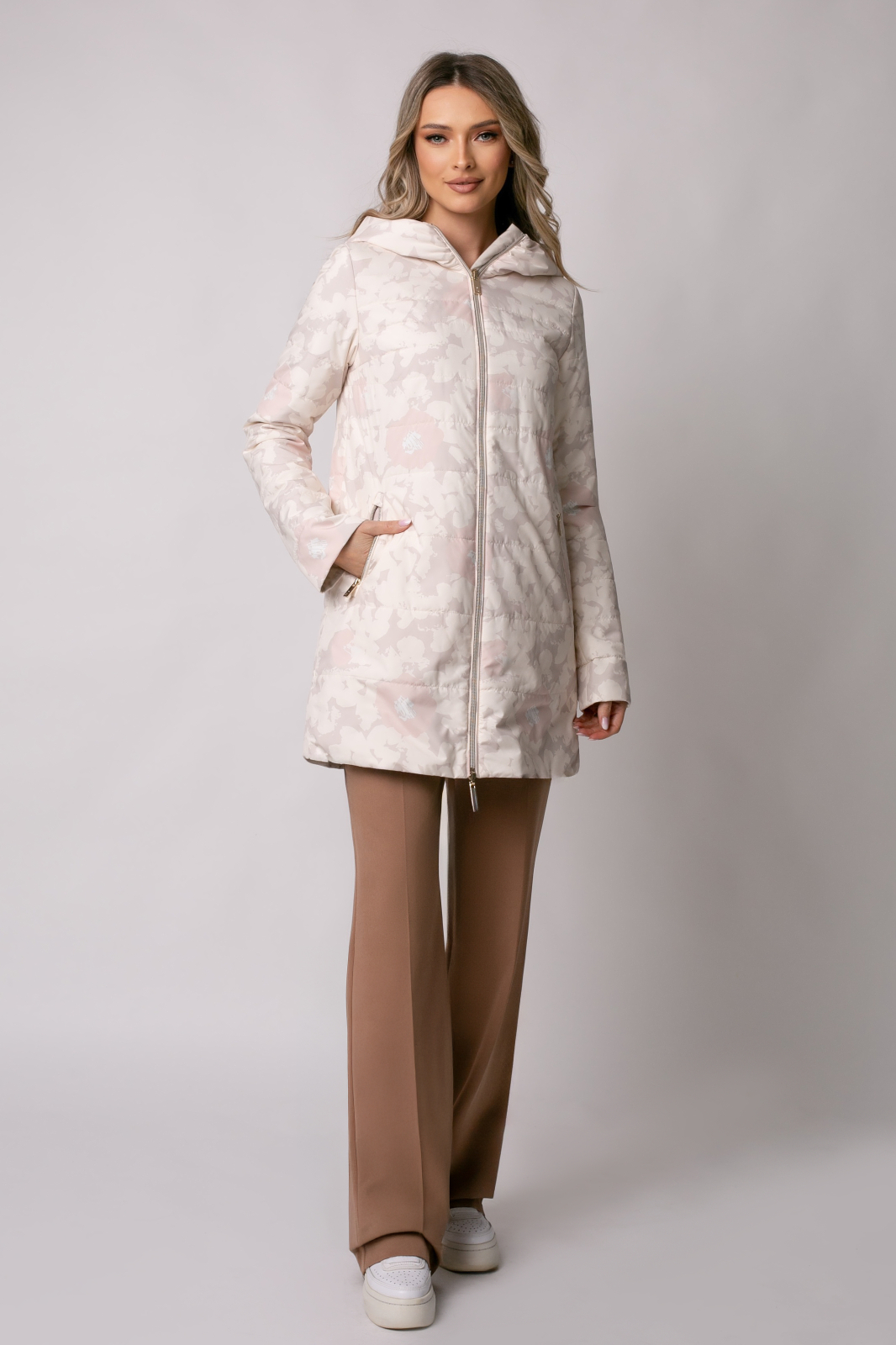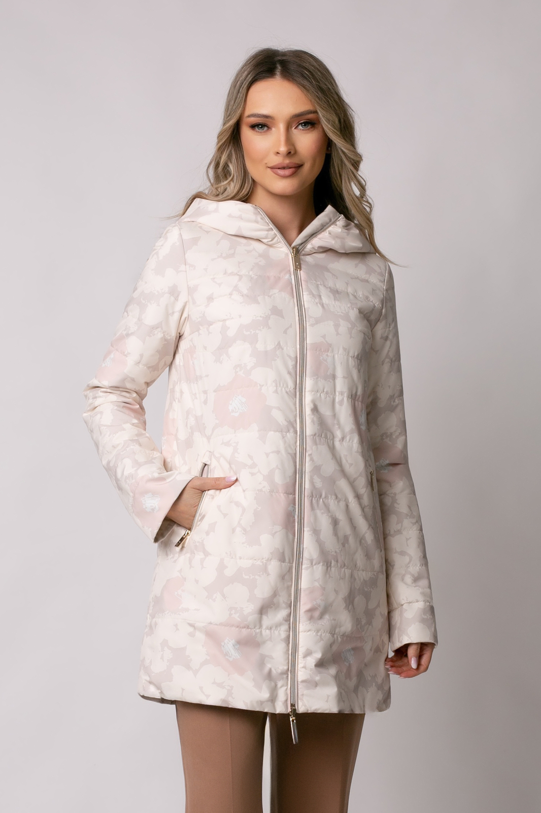 Geacă cu două fețe bej și imprimeu floral, recomandată pentru sezonul de primavară-toamnă. Are croiul lejer, buzunare laterale și se încheie cu fermoar.