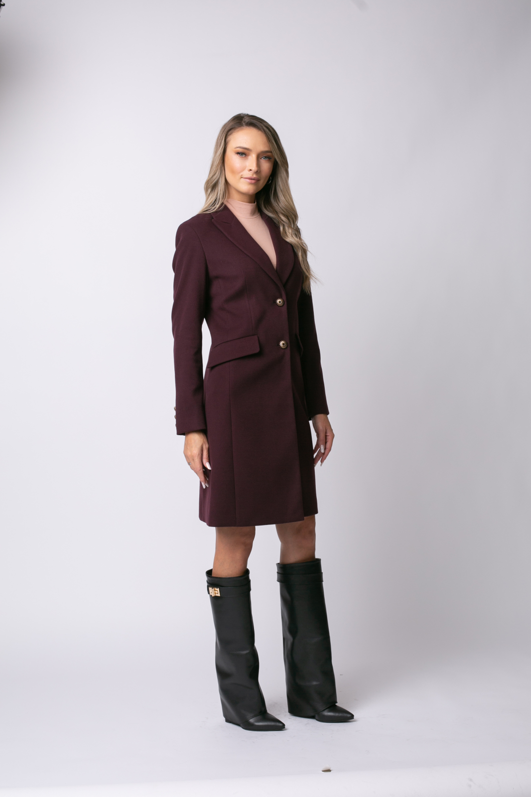 SENTIERRI Pardesiu Carol burgund din lână cu nasturi