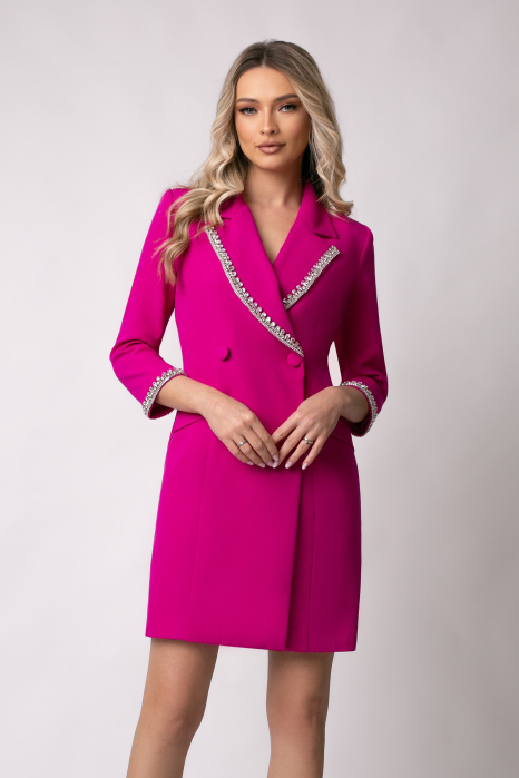 Amura Rochie elegantă fucsia tip sacou accesorizată cu pietricele