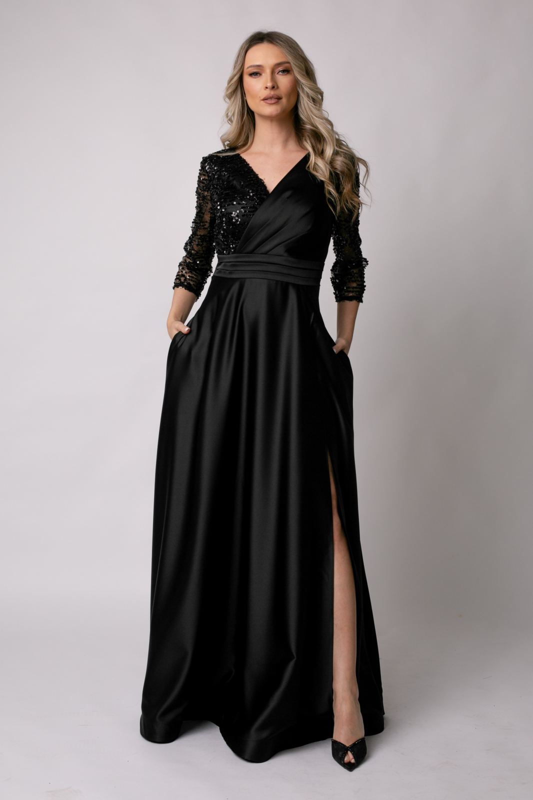 Amura Rochie lungă neagră de ocazie, mărime mare cu paiete