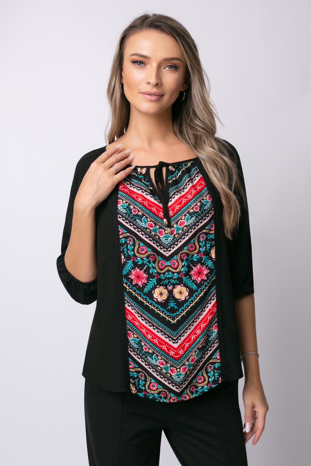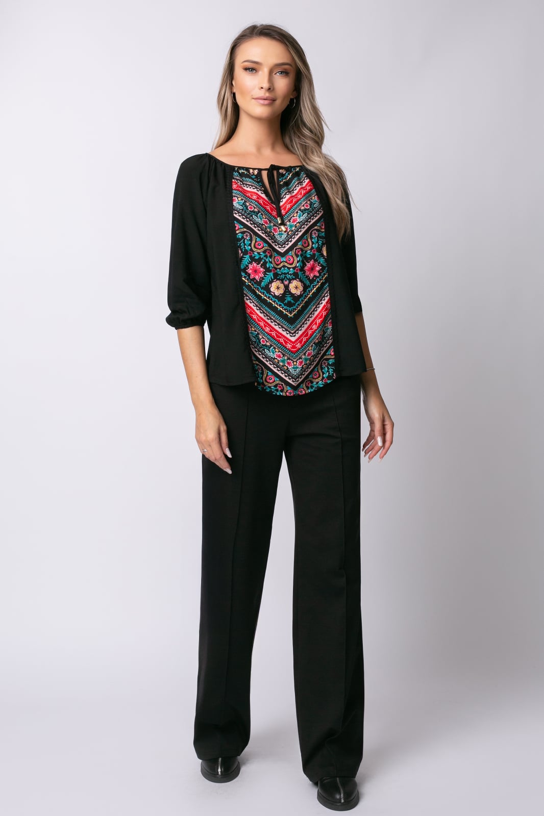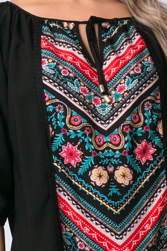 Amura Bluză neagră tip ie cu imprimeu tradițional