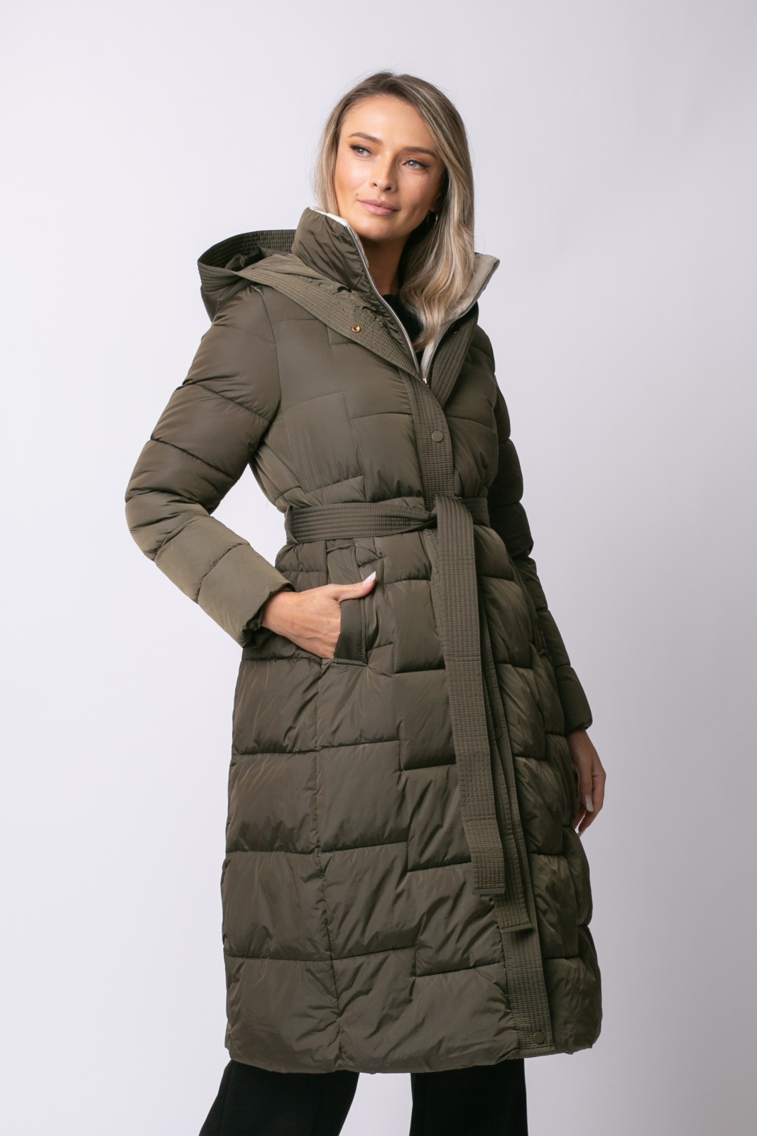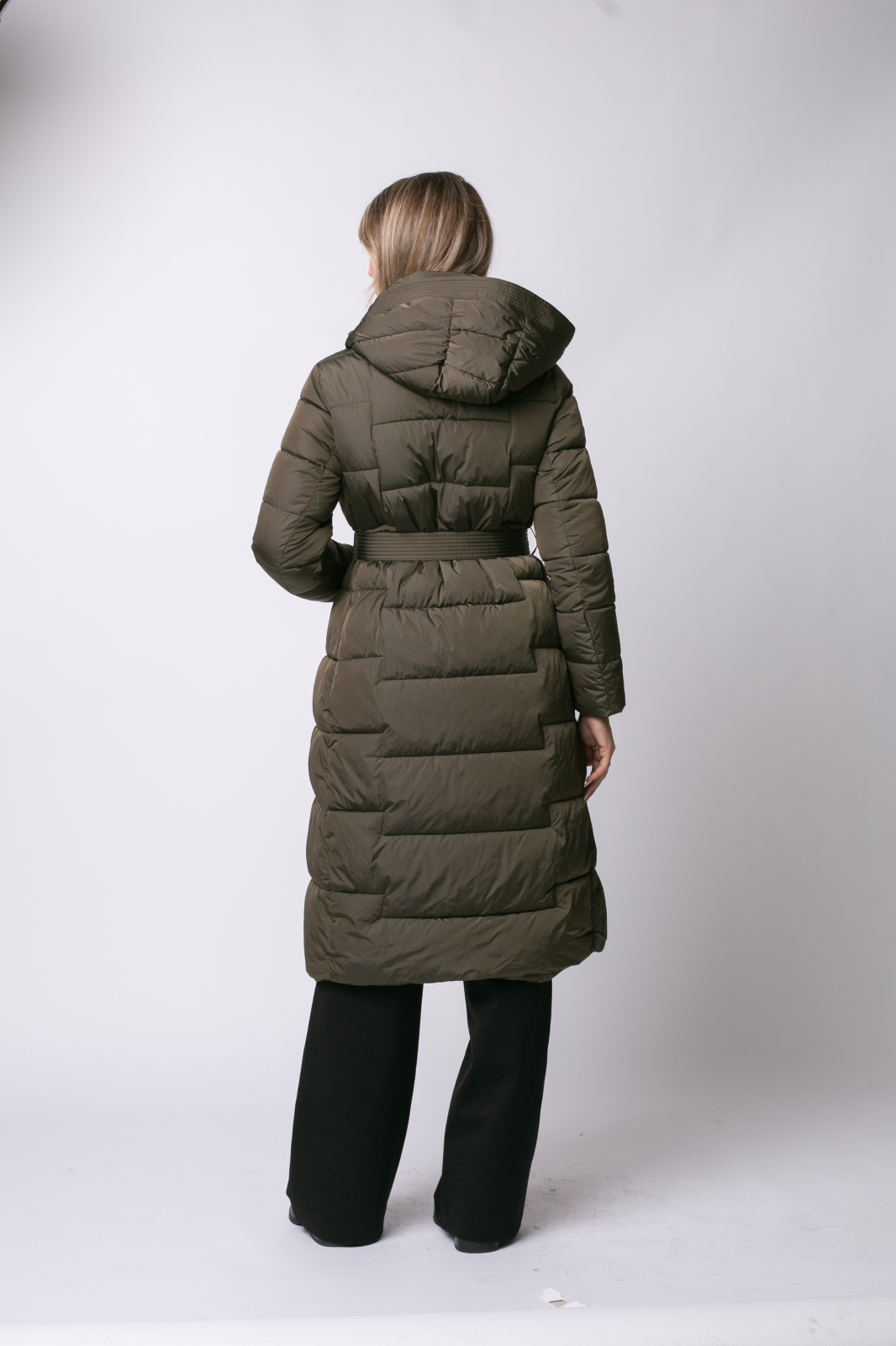 Amura Geacă lungă verde de iarnă, matlasată cu glugă