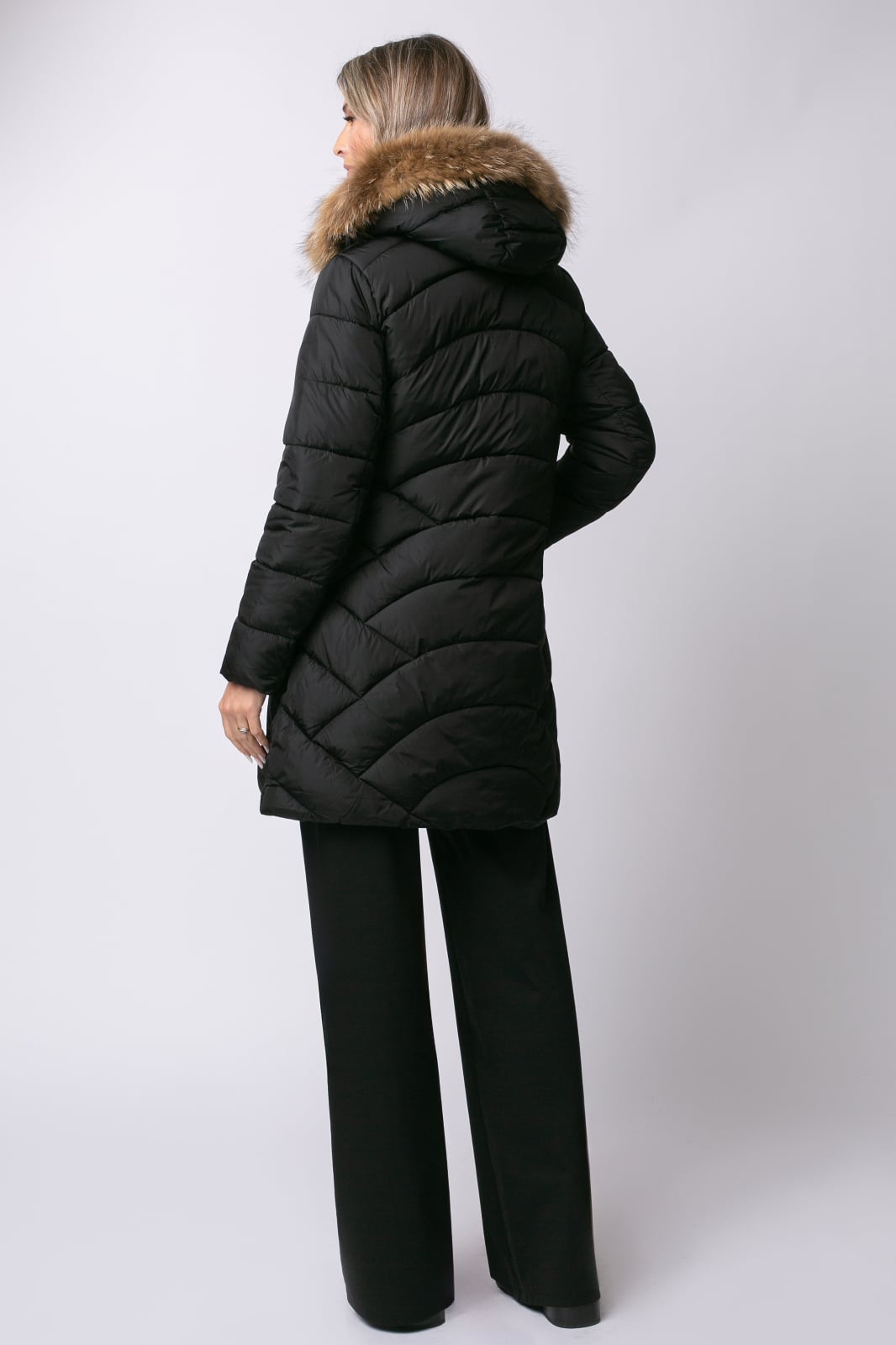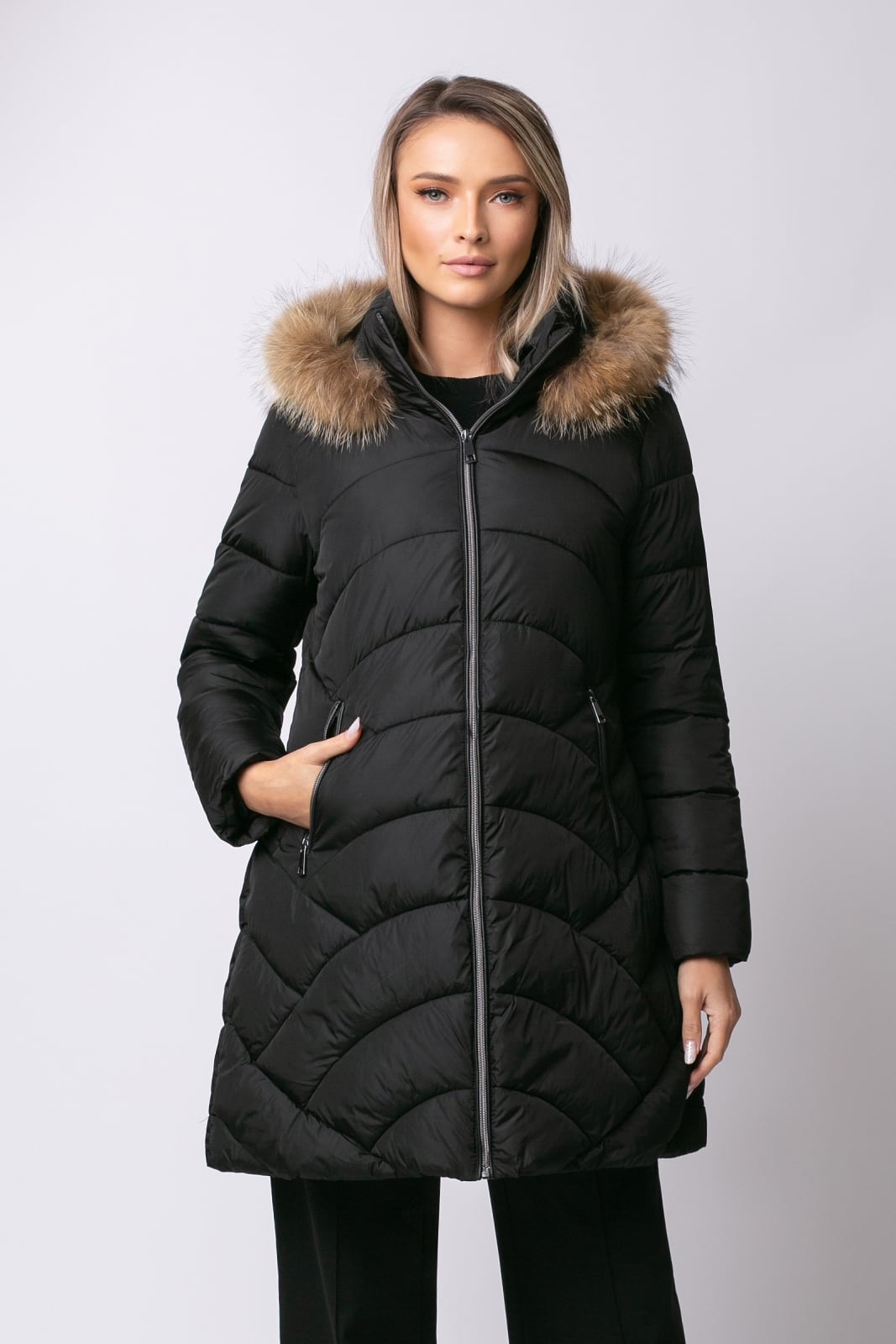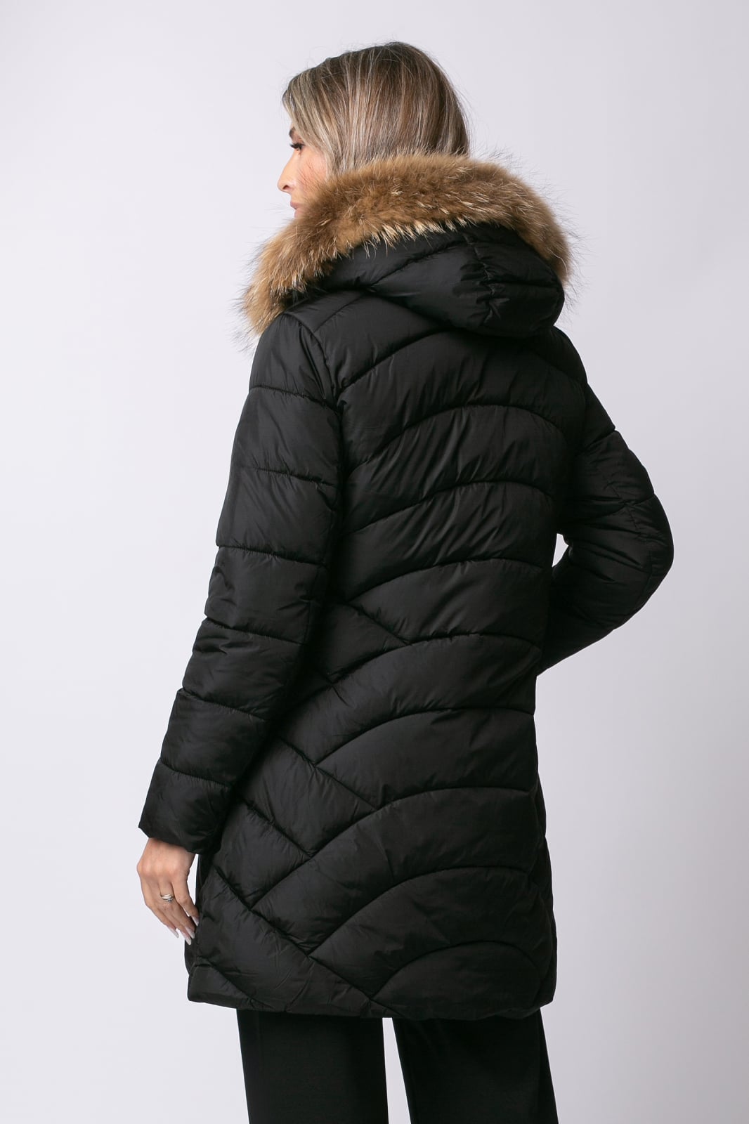 Geacă de iarnă matlasată din fâș pentru sezonul de iarnă. Are glugă cu blană și buzunare laterale încheiate cu fermoar.